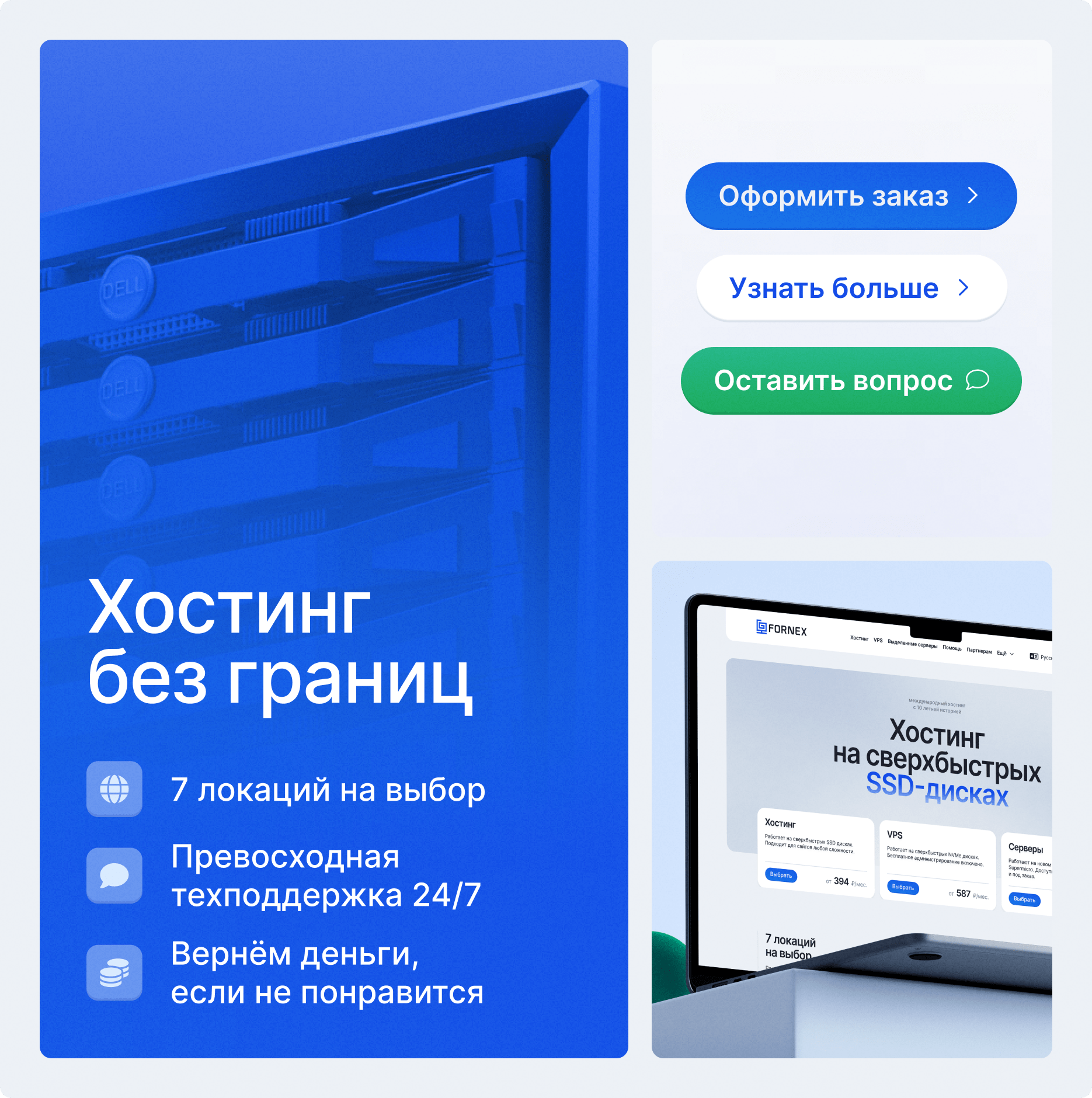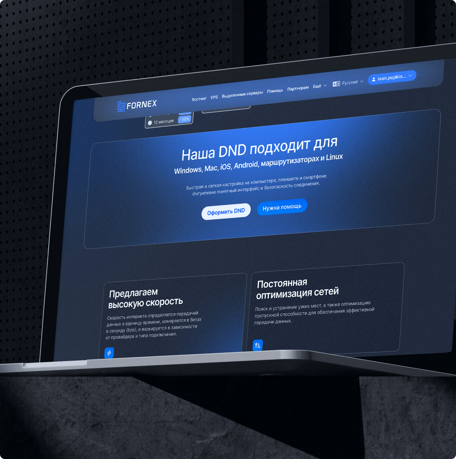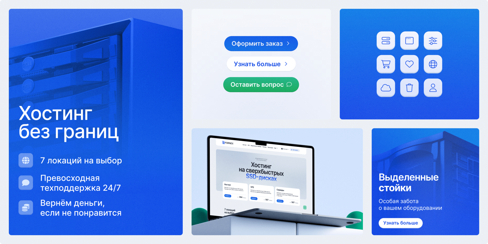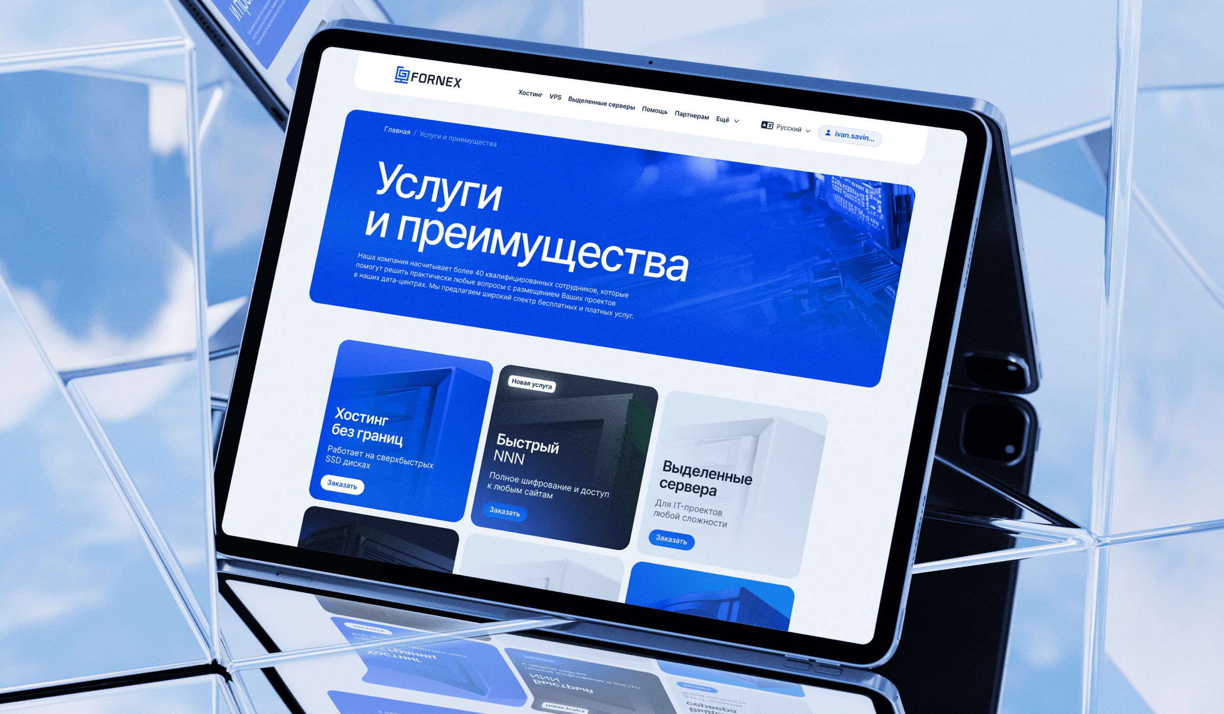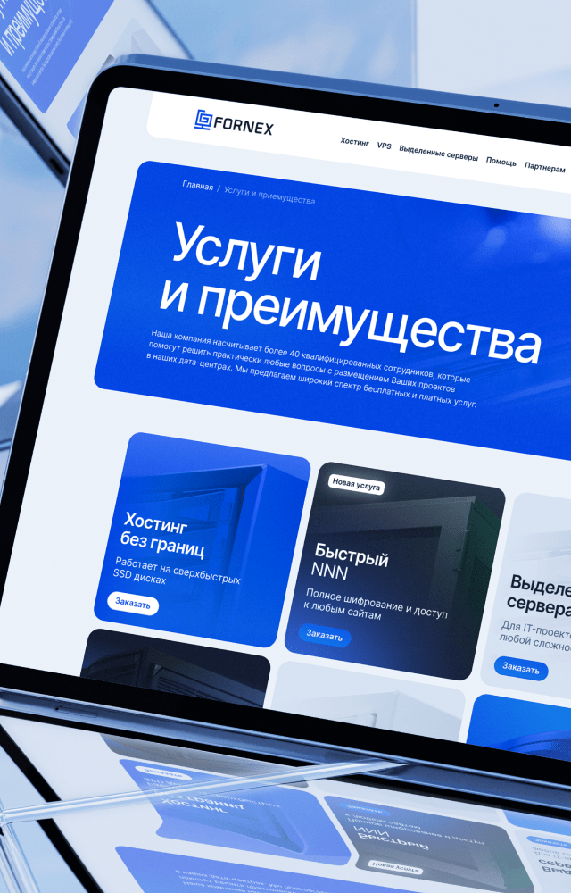Fornex — международный хостинг с более чем 10 летней историей. Собственное оборудование в крупнейших дата-центрах в разных точках мира позволяет нашим клиентам получать услуги высочайшего качества и стабильности. Главным продуктом дизайн-системы является редизайн сайта. Мы разработали комплексную систему носителей и коммуникаций, включая стилистическую основу, полиграфию.