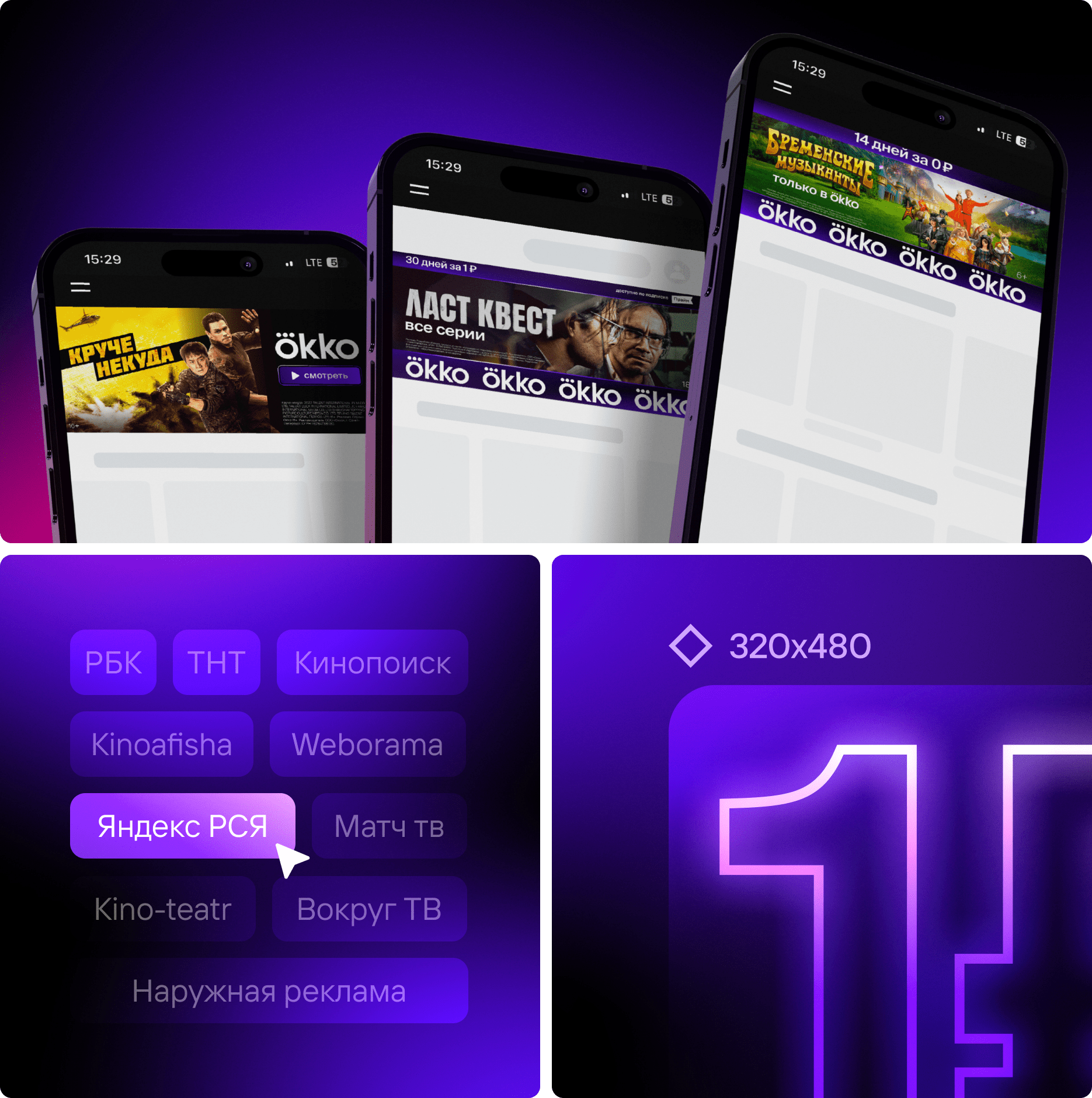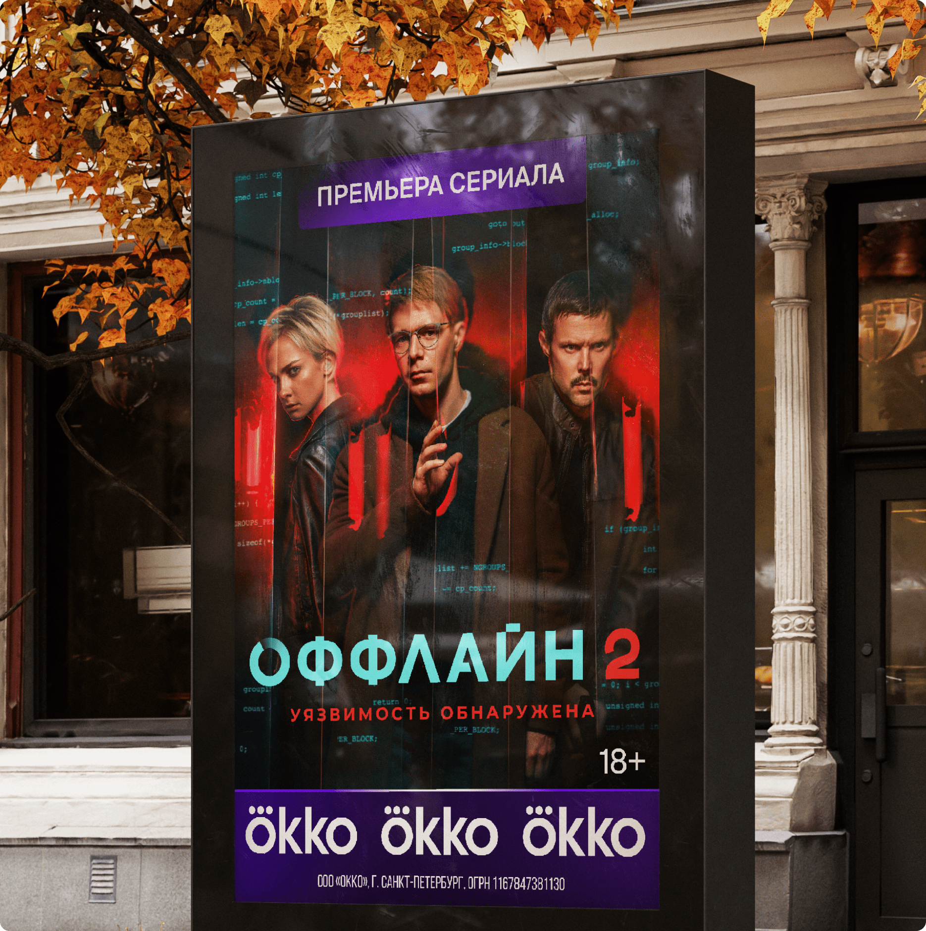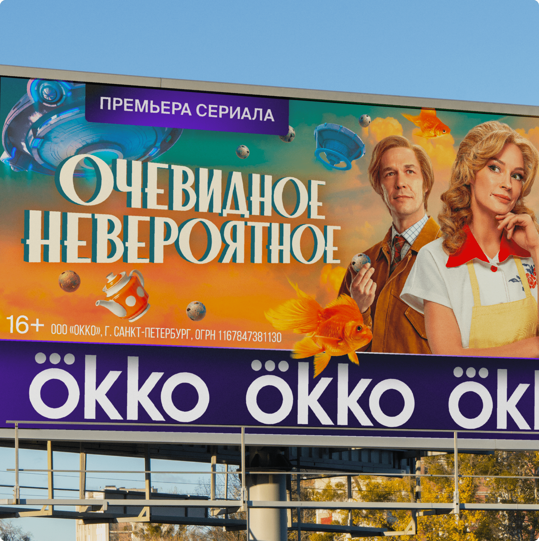 Okko — одна из крупнейших онлайн-платформ с обширным каталогом сериалов, фильмов и спортивных трансляций. Масштаб площадки требует постоянного производства большого количества креативов во всех форматах — от digital-баннеров до видеороликов и наружных материалов.