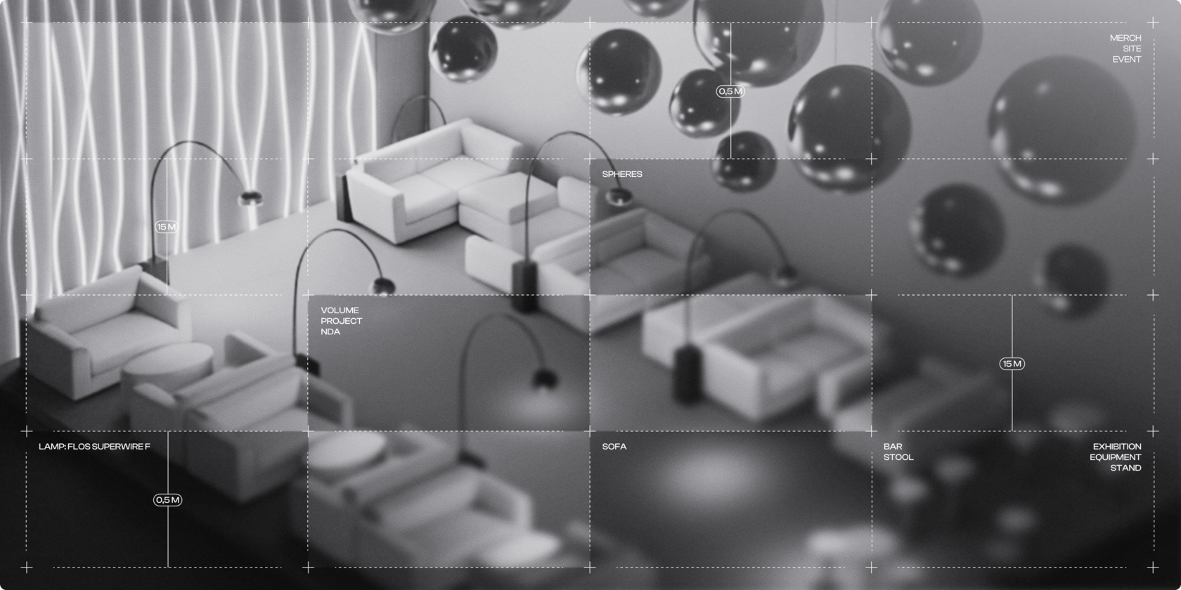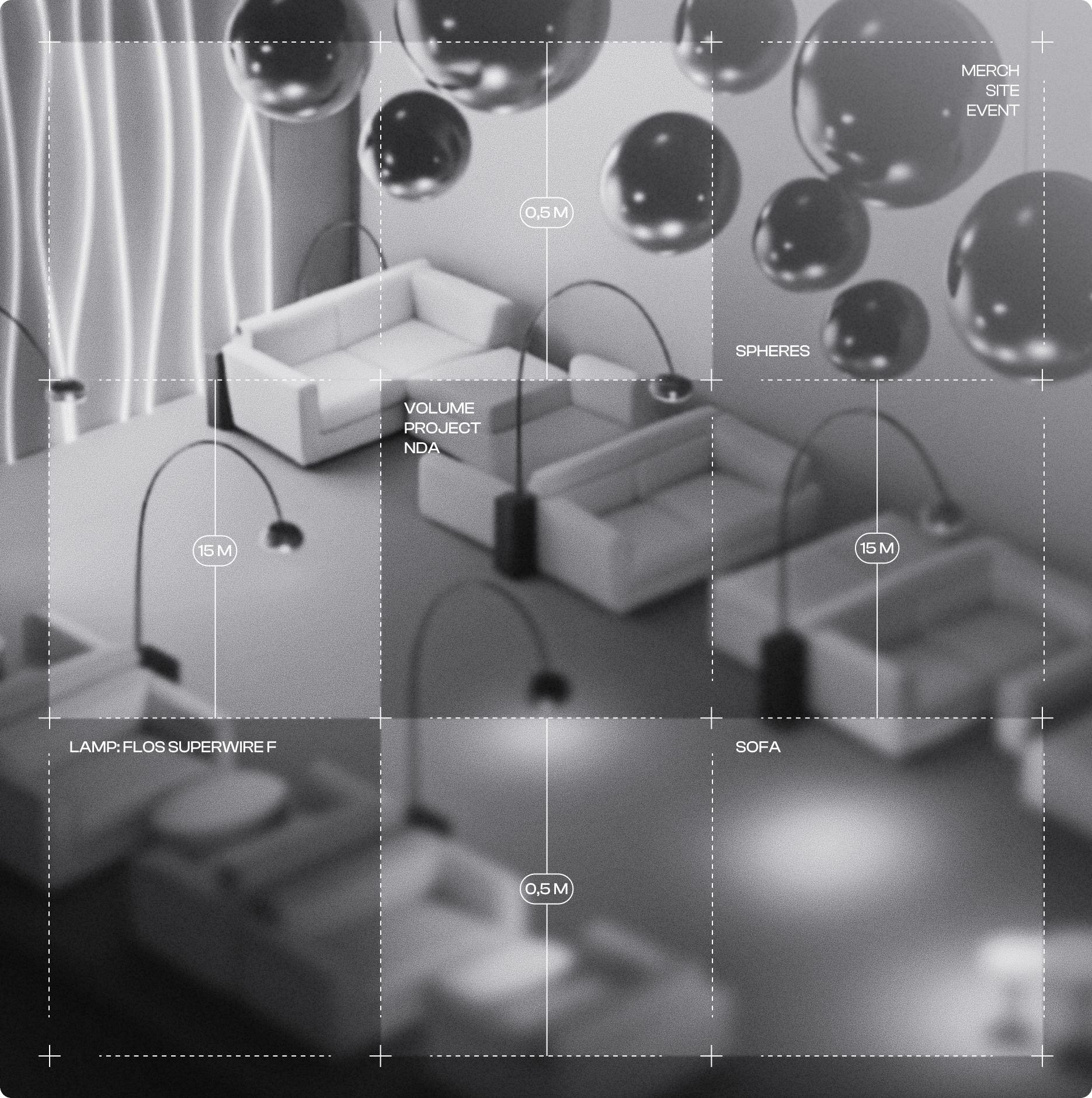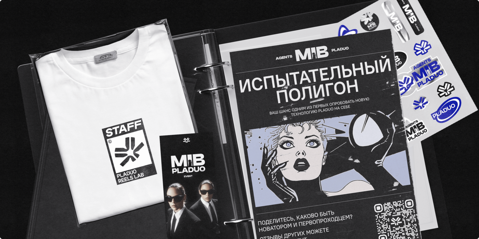 Его цель — создать брендинг и масштабную визуальную концепцию для внутреннего мероприятия. Для этого мы вместе с командой клиента выбрали концепцию «агентов» в духе «Людей в черном», которая объединит архитектуру, графику и продукт в единую иммерсивную систему