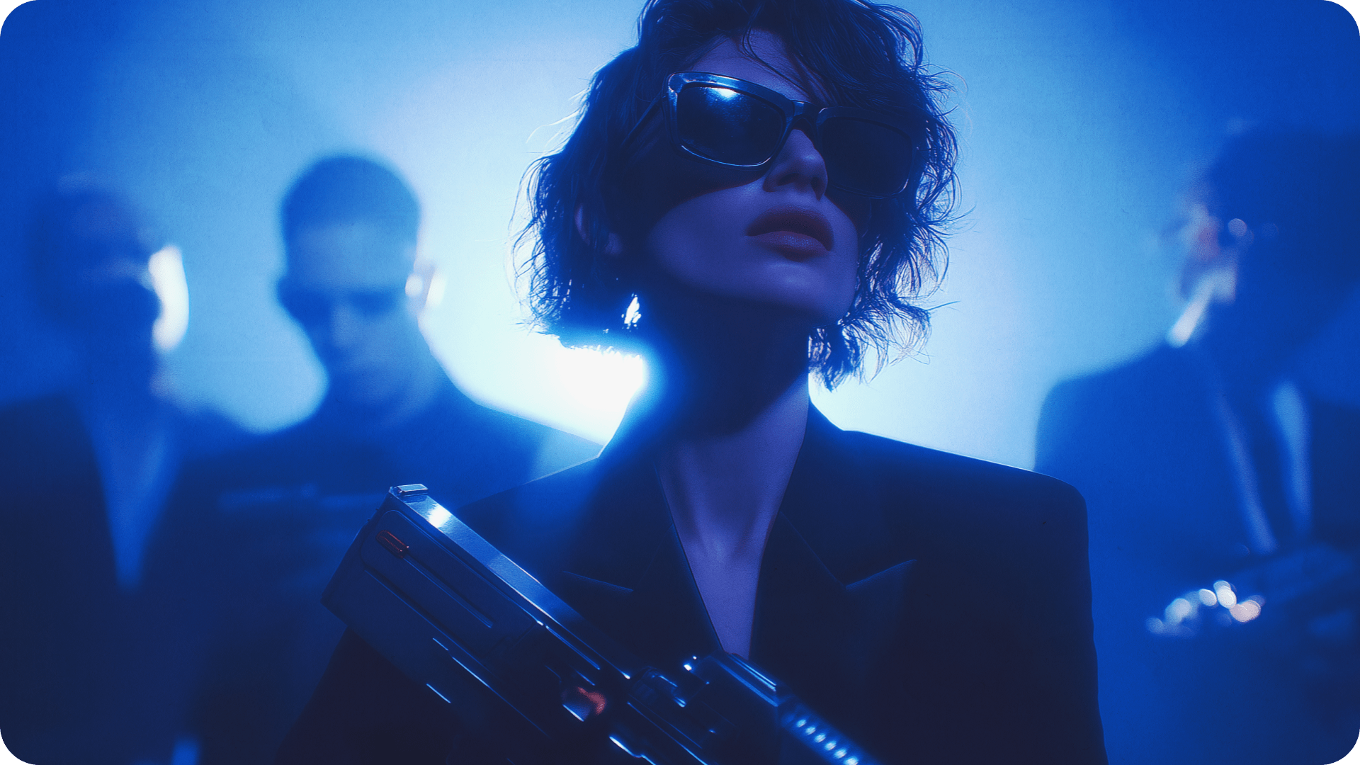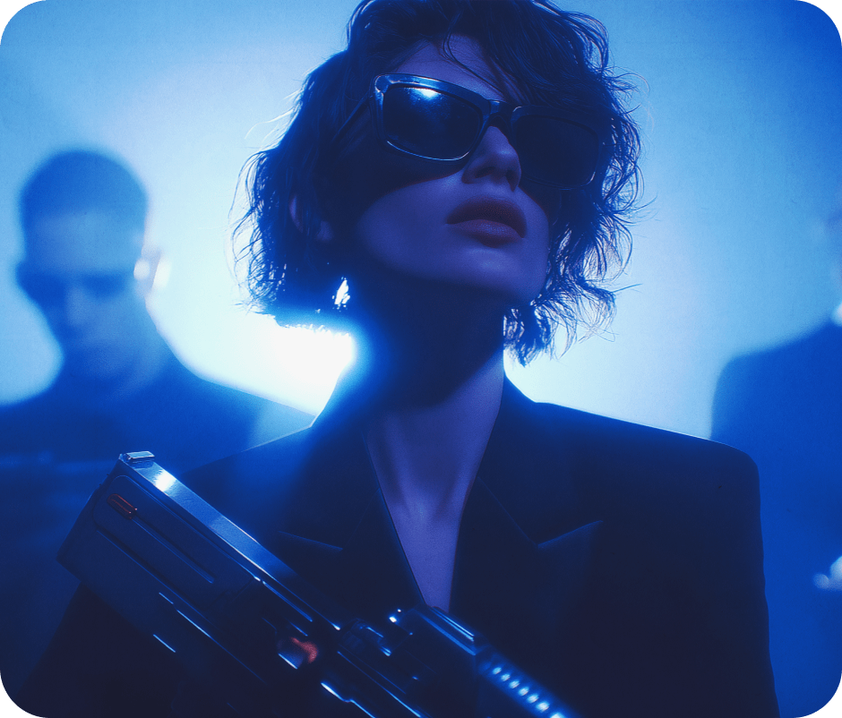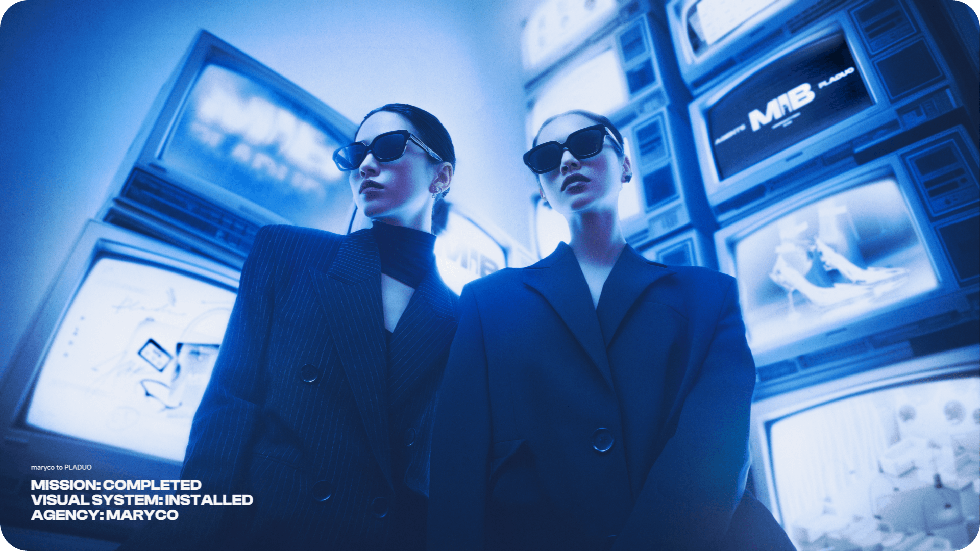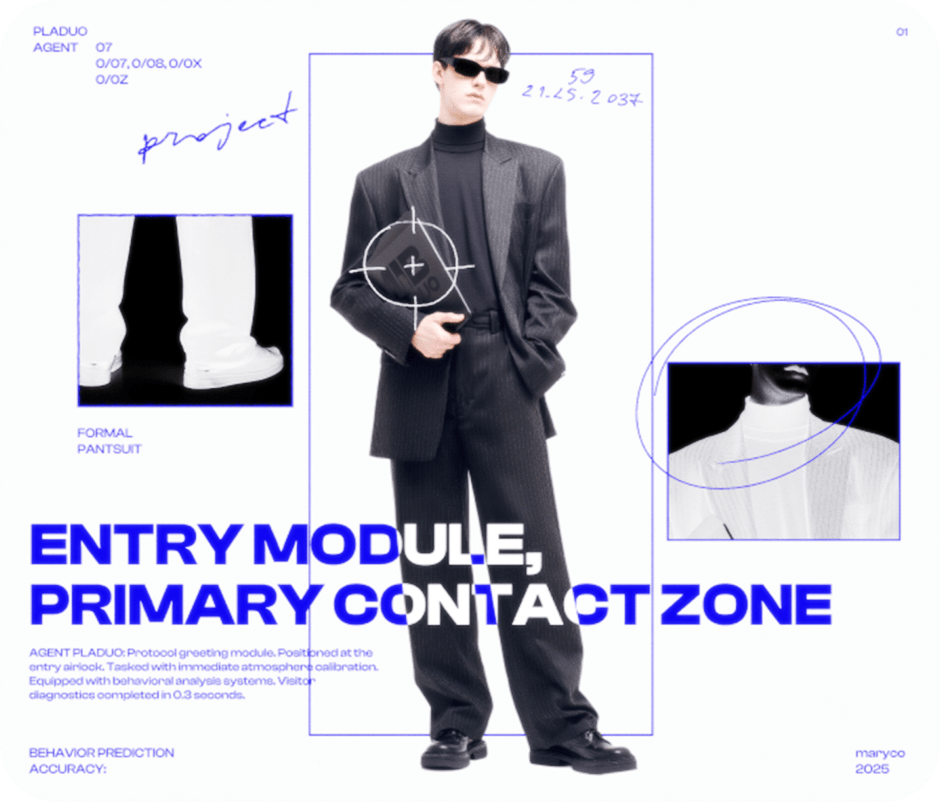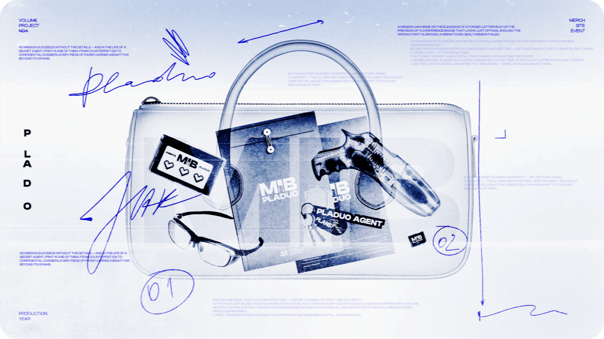 Его цель — создать брендинг и масштабную визуальную концепцию для внутреннего мероприятия. Для этого мы вместе с командой клиента выбрали концепцию «агентов» в духе «Людей в черном», которая объединит архитектуру, графику и продукт в единую иммерсивную систему