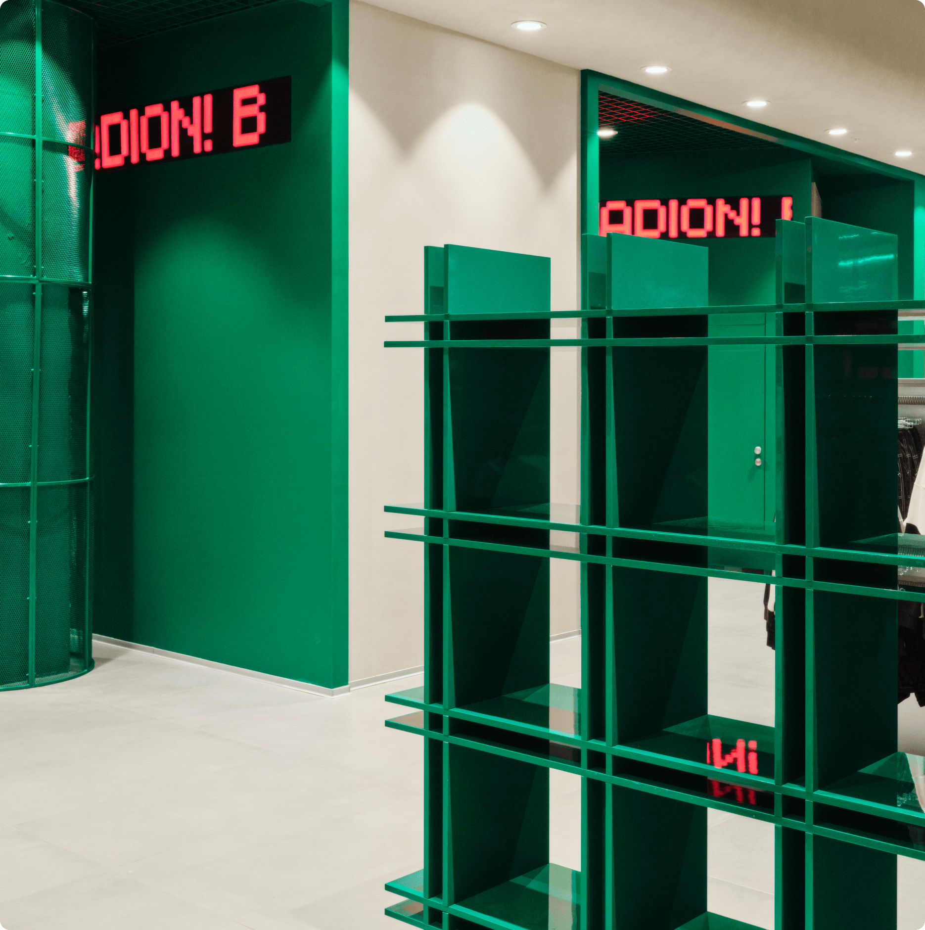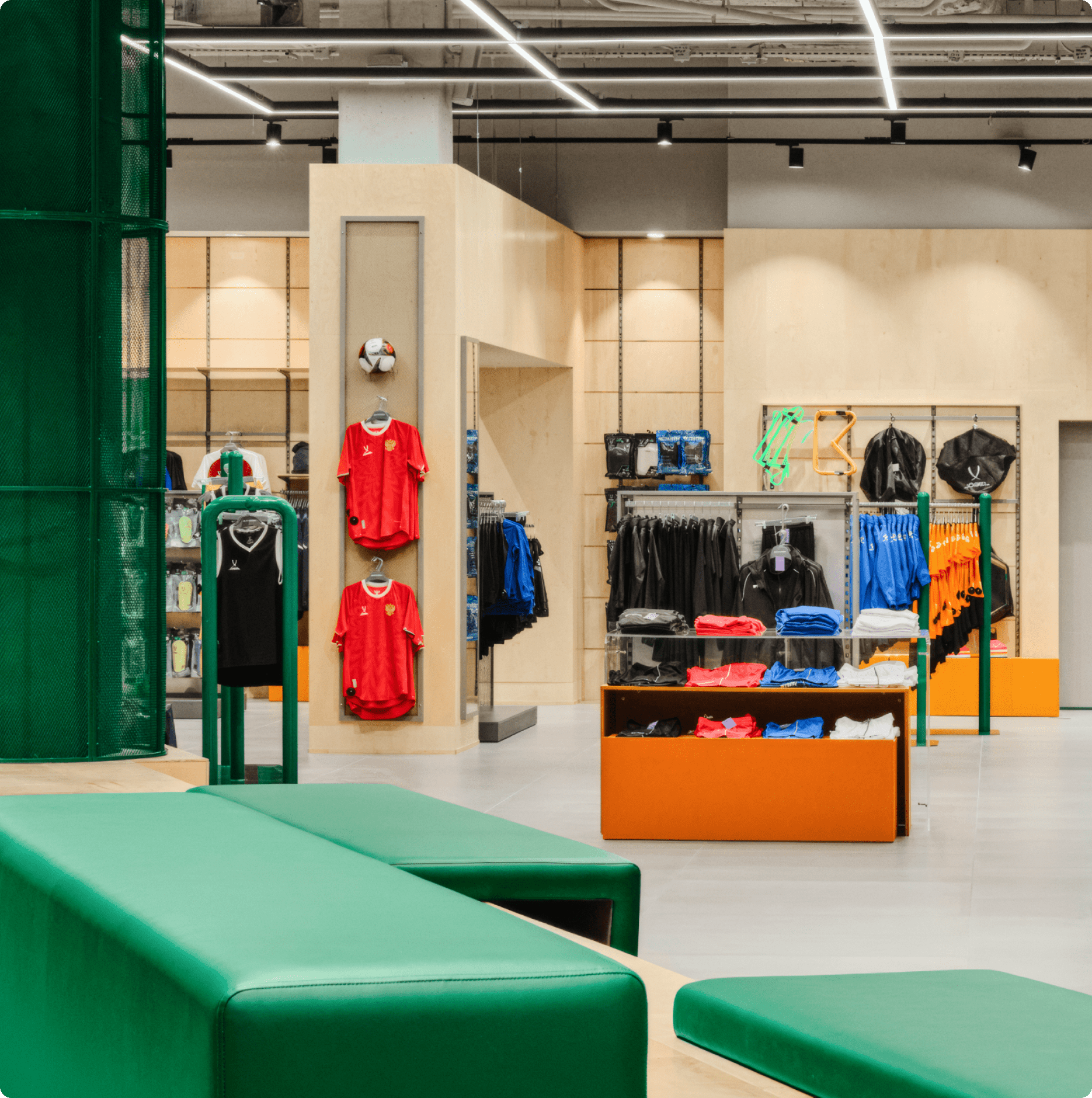 Мы также предложили концепцию элементов средового дизайна — от расположения отделов и служебных зон до решений для бренд-коллабораций.