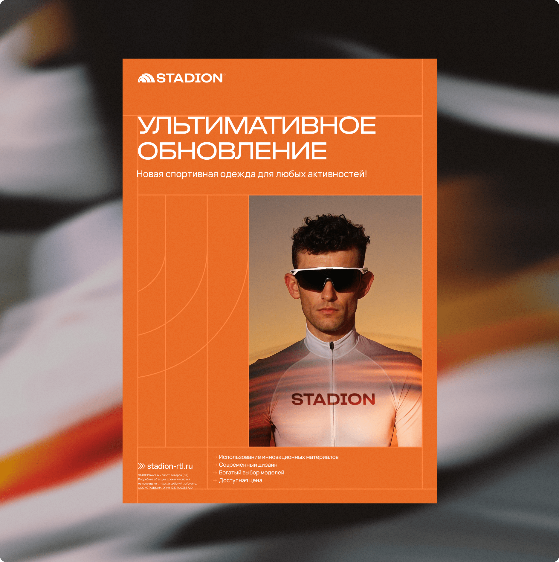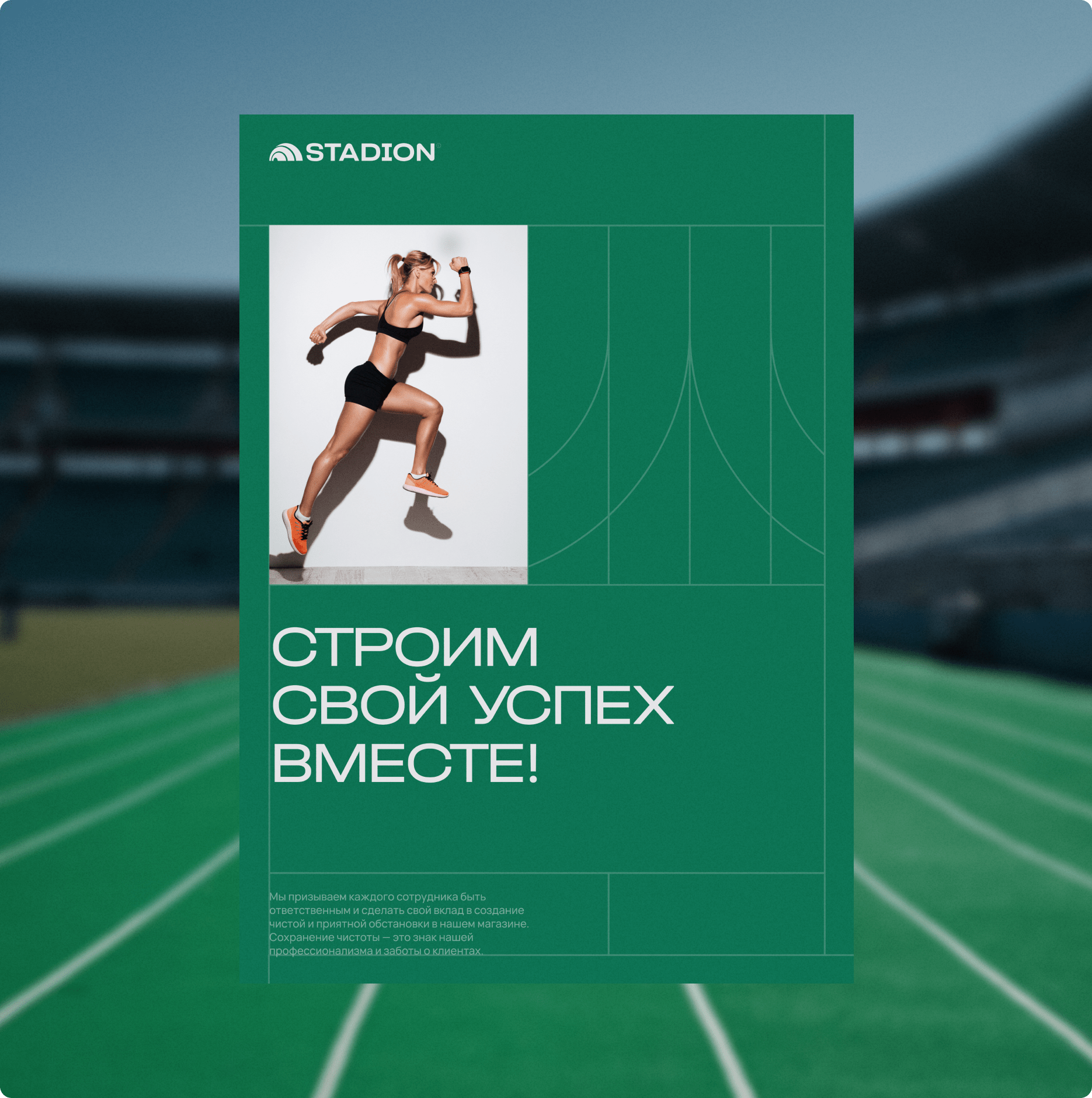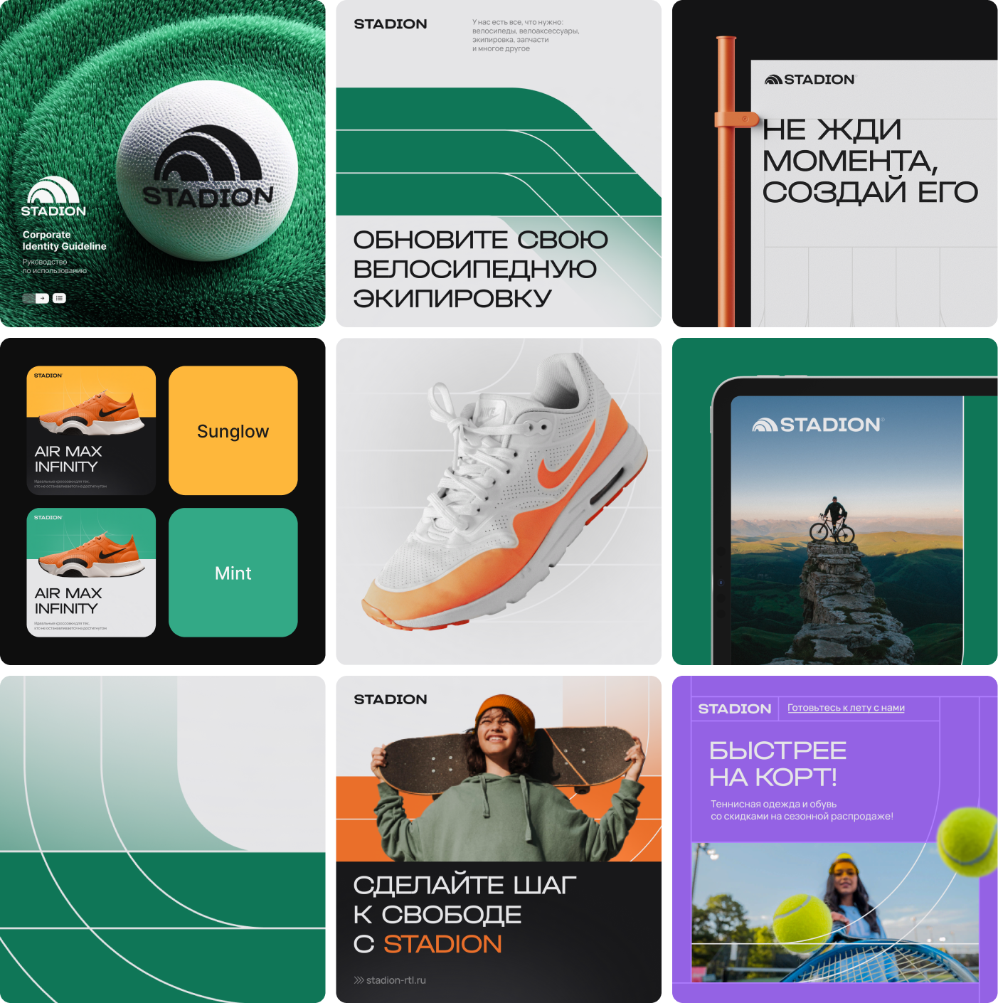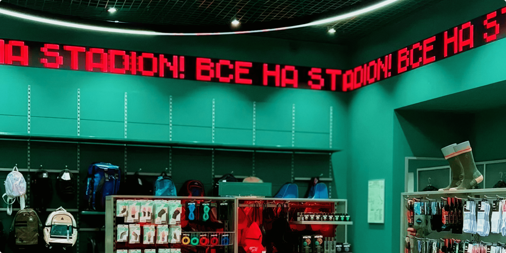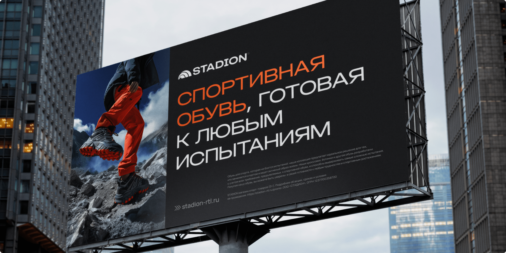 Stadion — это сеть магазинов с товарами для спорта и активного отдыха. Миссия команды бренда — быть проводником в мир спорта для всех, кто ищет себя и экспериментирует. Мы разработали комплексную систему носителей и коммуникаций, включая стилистическую основу, логотип, полиграфию, диджитал-материалы и концепцию оформления пространства магазина.