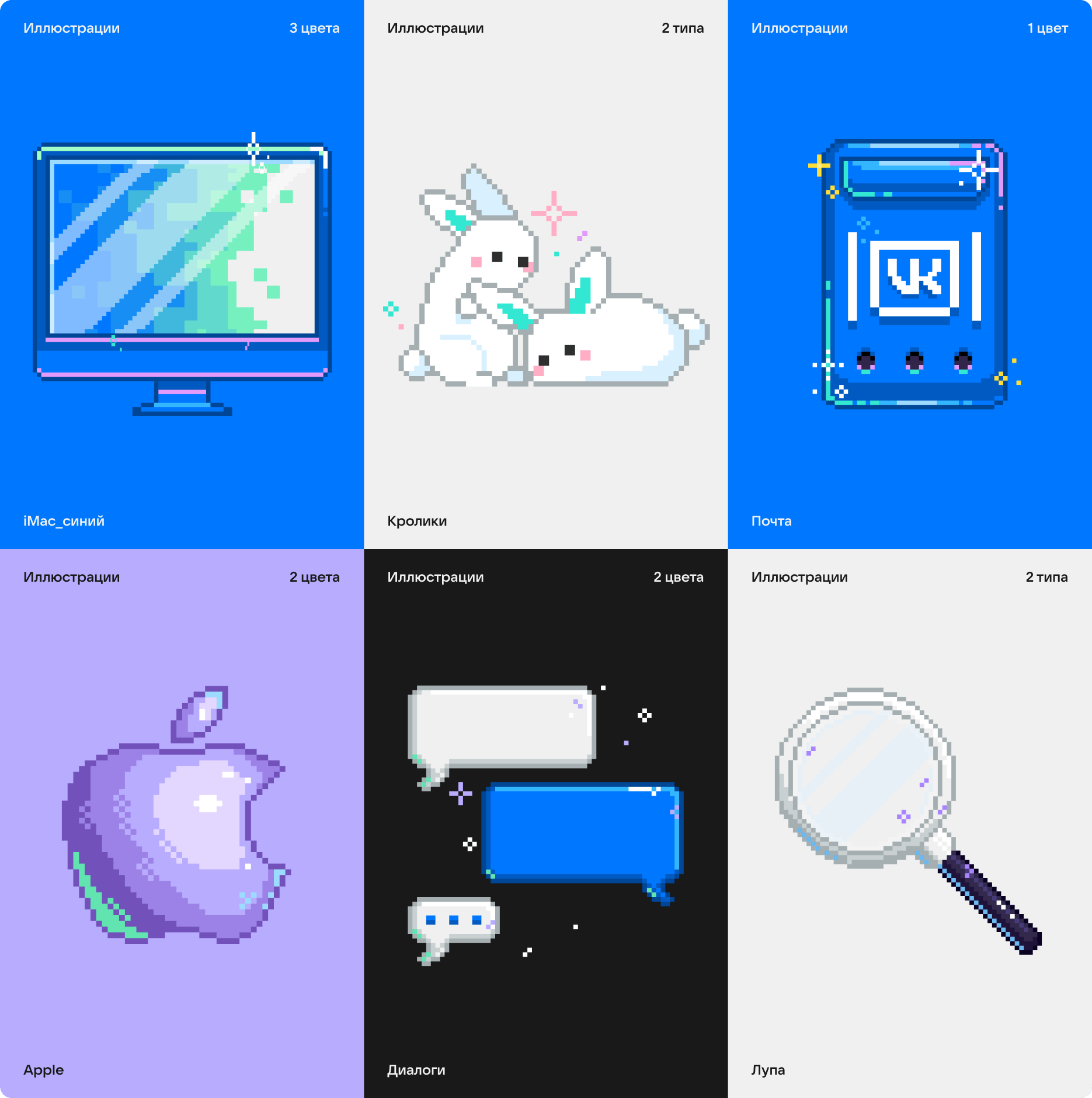 Разработали удобный конструктор иллюстраций, чтобы оптимизировать работу с медиа-материалом. Отрисовали 80+ иллюстраций и создали базу знаний по пиксель-арту для команды и подрядчиков.