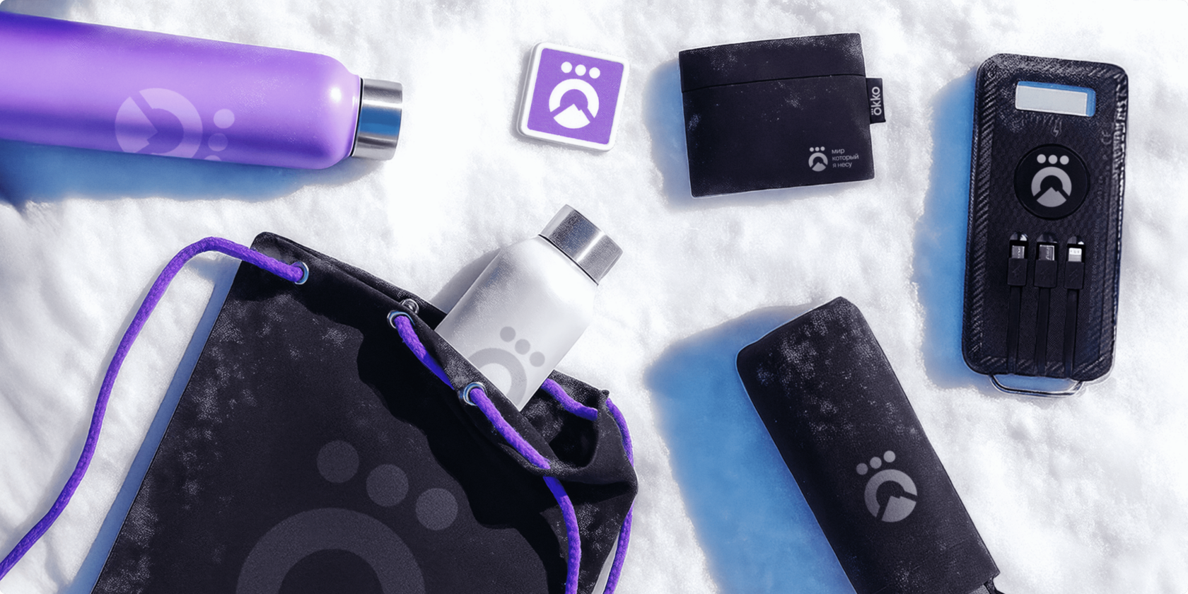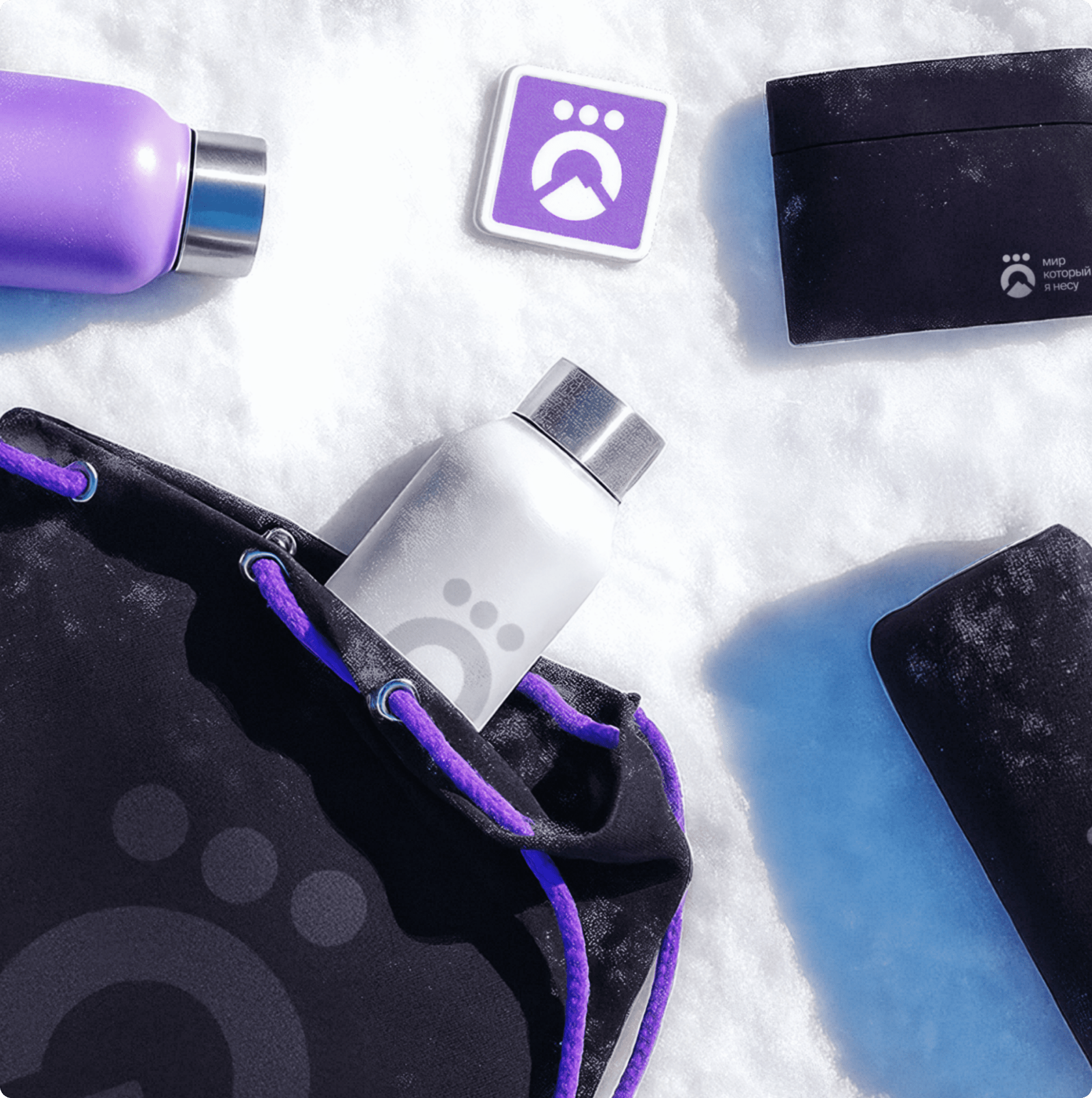 Логотип объединил в себе фирменную лапку Окко и горы — отражение локации фестиваля. Наша визуальная айдентика является адаптивной и отлично раскладывается на самые разные носители — от наружных баннеров и буклетов с программой до стильного минималистичного мерча.