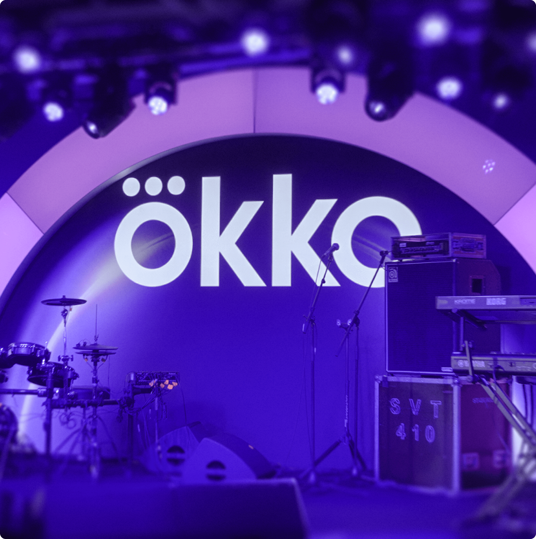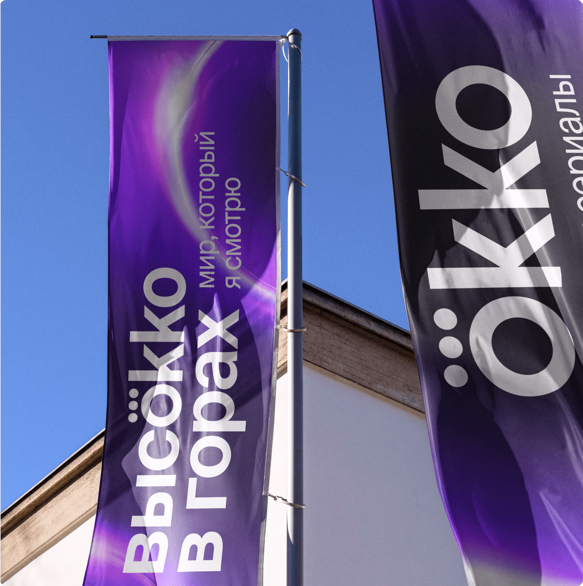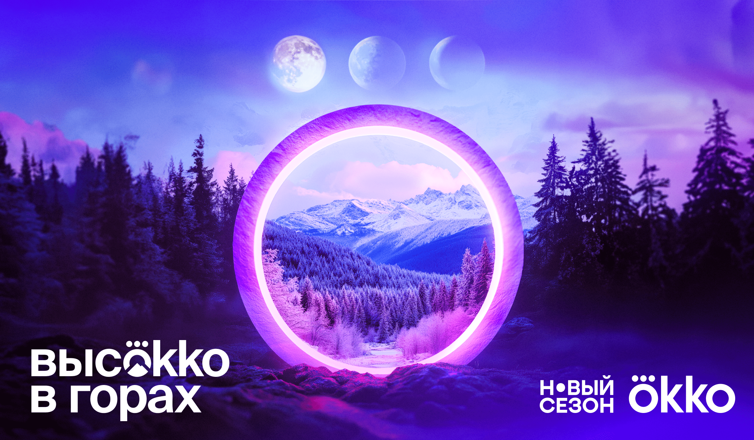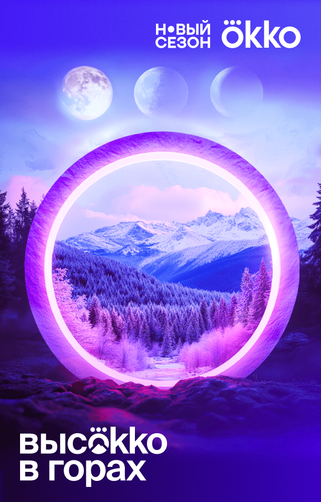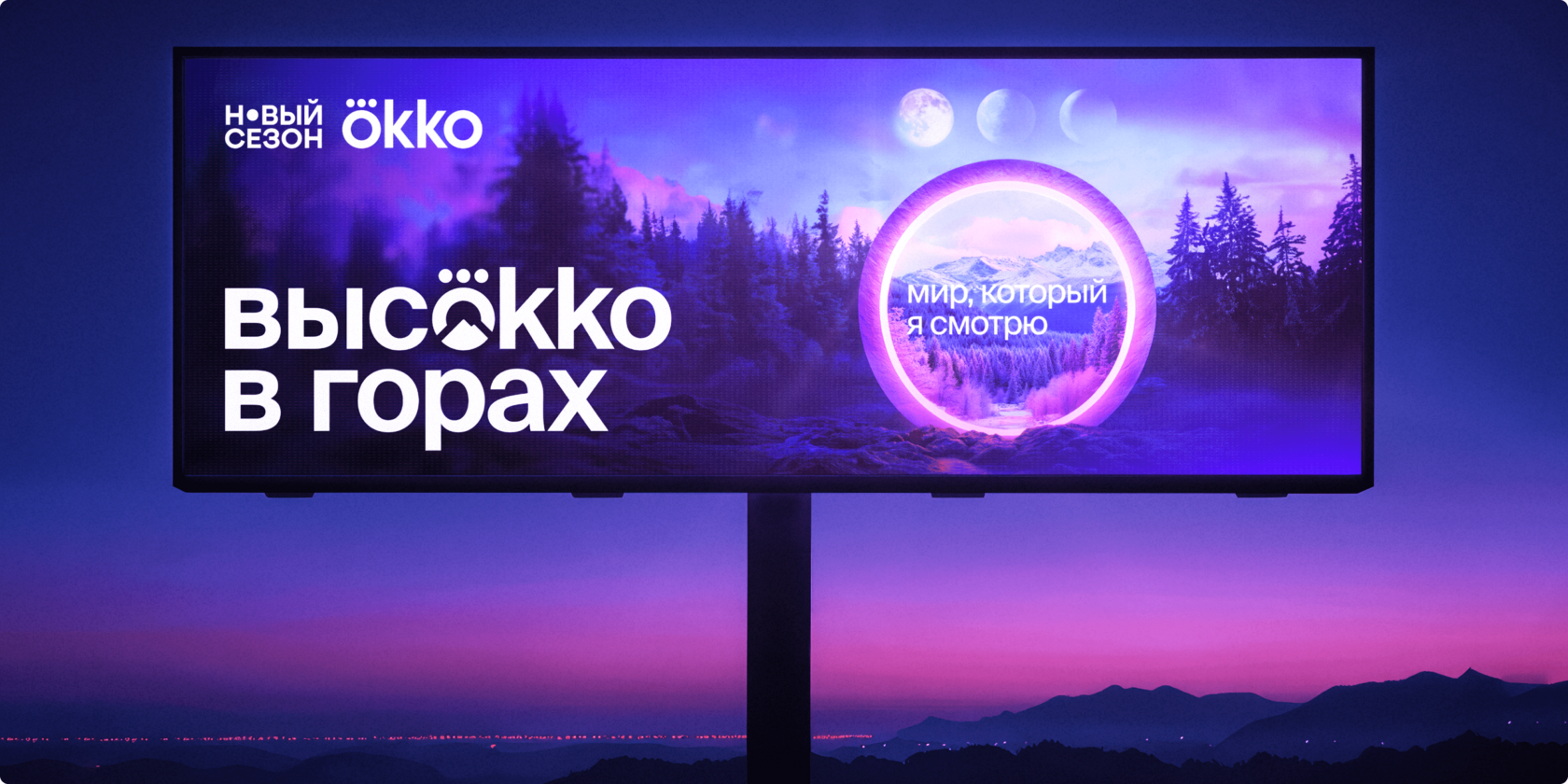 Мы разработали единый брендинг визуальной айдентики для кинофестиваля с красноречивым названием «Вы с Окко в горах». Объединили неизменные компоненты визуальной айдентики Окко — электрический луч и фиолетово‑чёрный градиент, открыв настоящий портал в киномиры.